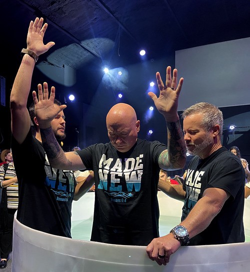 - water baptism by immersion after repenting of one's sins and receiving Christ's gift of salvation.